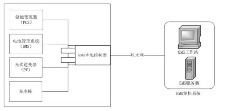 EMS是光储充系统的核心组成部分,负责整个系统的底层数据采集、系统网络监控、能量管理调度和运行数据分析。为保证光储充系统的稳定运行,EMS采用两级分级控制体分为本地EMS和集控EMS,其结构图如下图所示。