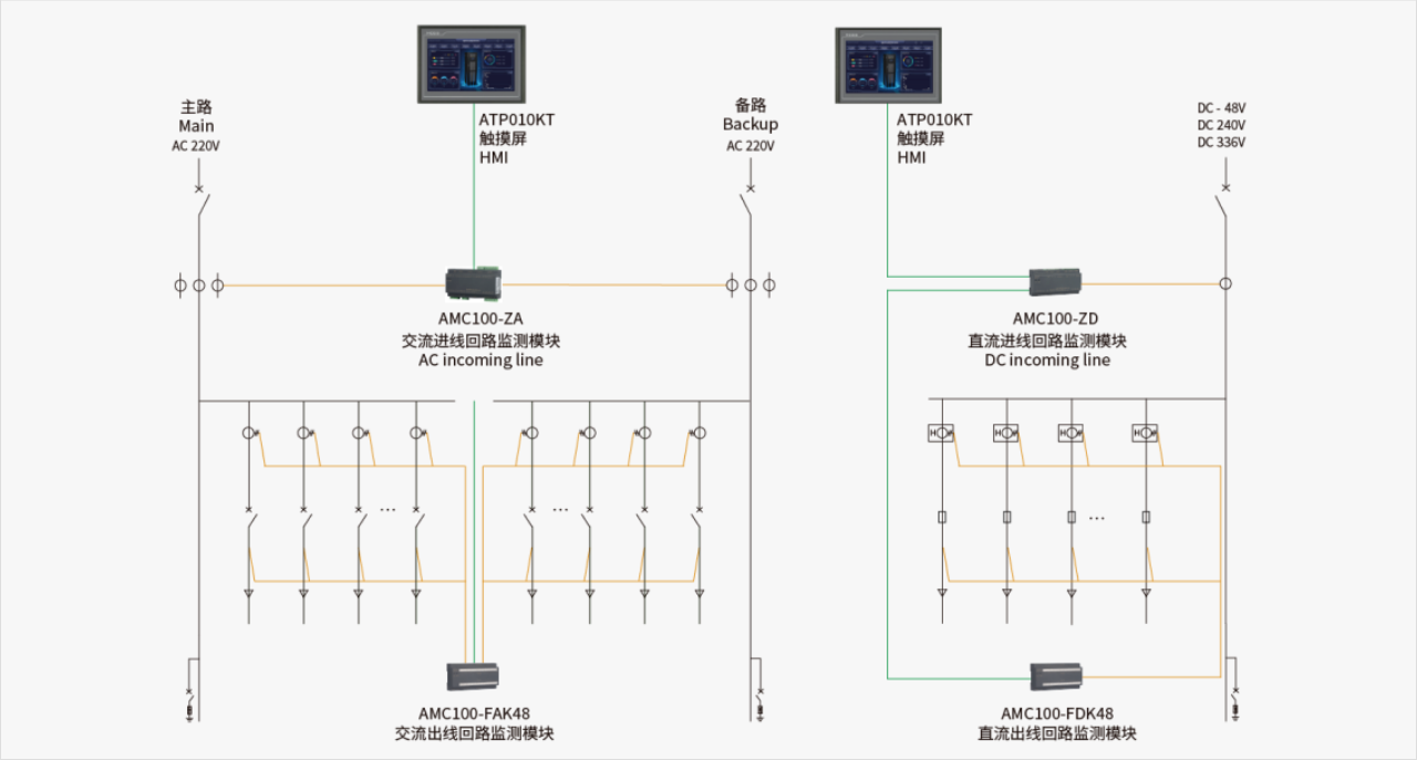安科瑞AMC100系列解决方案,专为数据中心末端电源精密配电柜(列头柜)量身定制,可实时在线监测并显示列头柜所有进出线回路的电力参数、开关状态等信息,同步将数据上传至动环监控系统,实现末端配电的精细化管控。该方案全面覆盖交流(AC220V)及直流(DC-48V/240V/336V)系统,凭借优秀的性能与灵活的配置,有效解决传统监控方案在成本、体积、安装等方面的痛点,适配高密度机柜的供电监测需求。